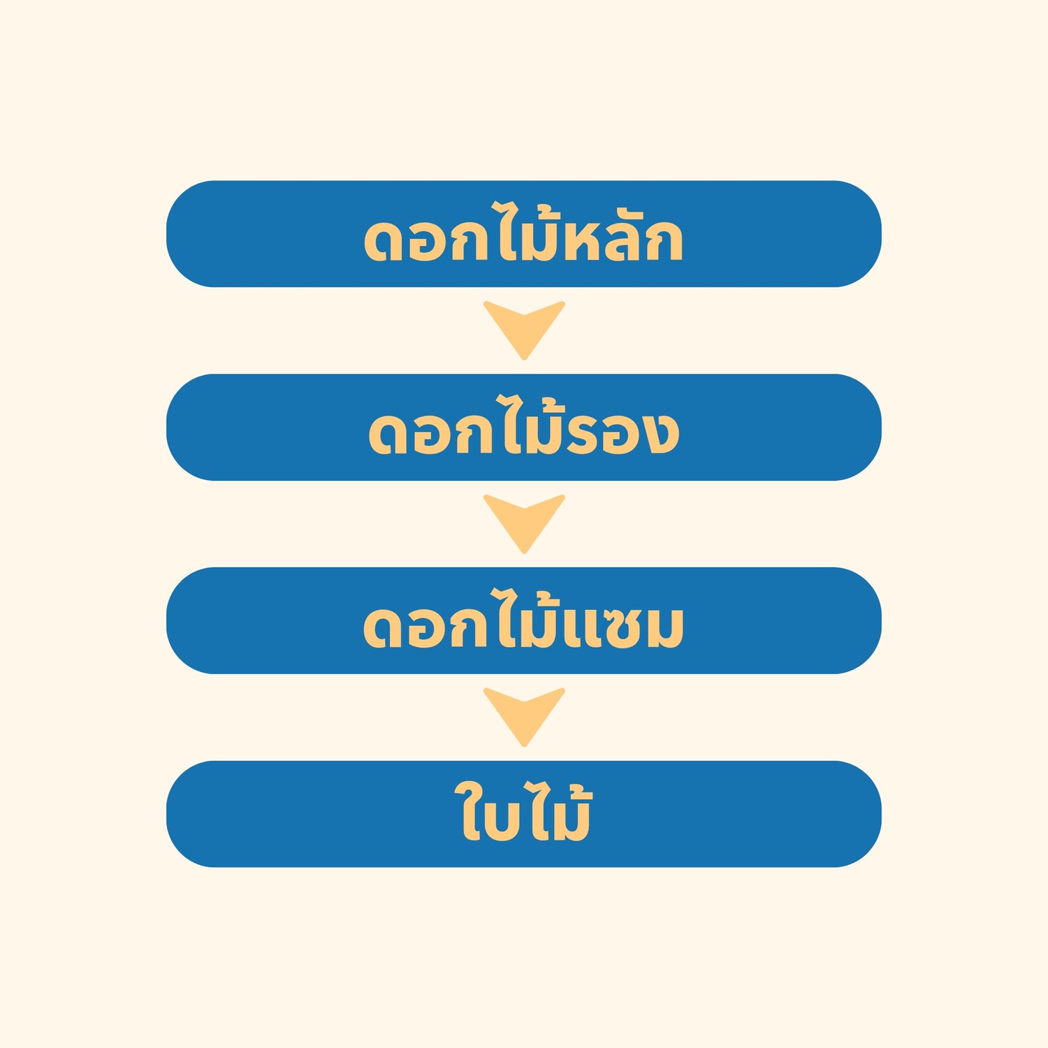 เริ่มจากการเลือกดอกไม้ทีละชนิด — ดอกไม้หลัก ดอกไม้รอง ดอกไม้แซม และใบไม้ตกแต่ง เพราะทุกช่อเริ่มต้นจาก “หนึ่งก้าน” เสมอ