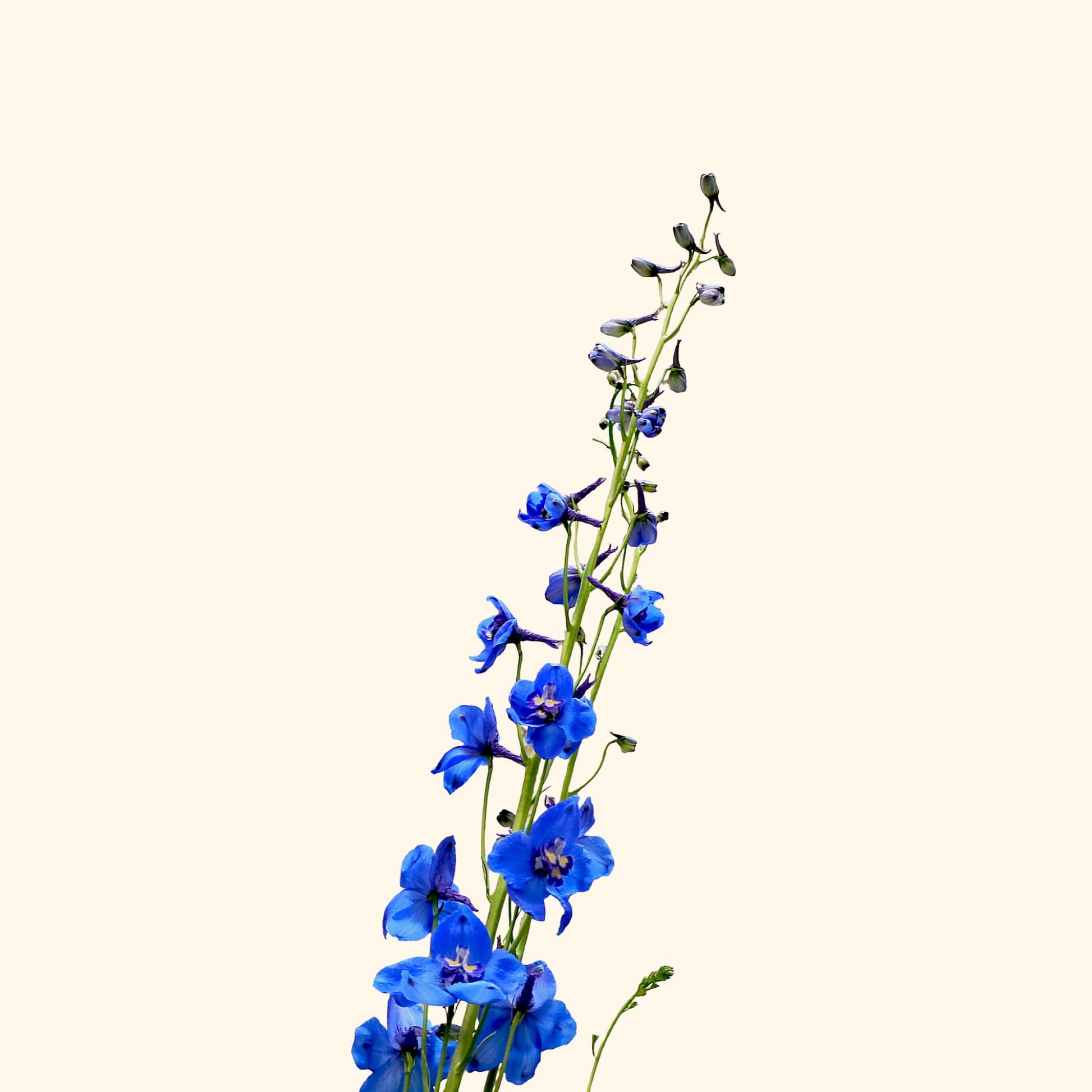 เดลฟีเนียมสื่อถึง พลังบวก ความสง่างาม และหัวใจที่เปิดกว้าง ดอกเรียงตัวเป็นช่อสูงคล้ายหอคอย แทนพลังใจที่มุ่งสู่สิ่งที่ดีขึ้นเรื่อย ๆ นอกจากนี้ยังมีความหมายของ การปกป้องและกำลังใจ จึงเหมาะสำหรับใช้ แสดงความยินดีหรือส่งพลังให้ใครสักคน