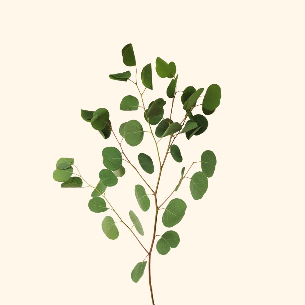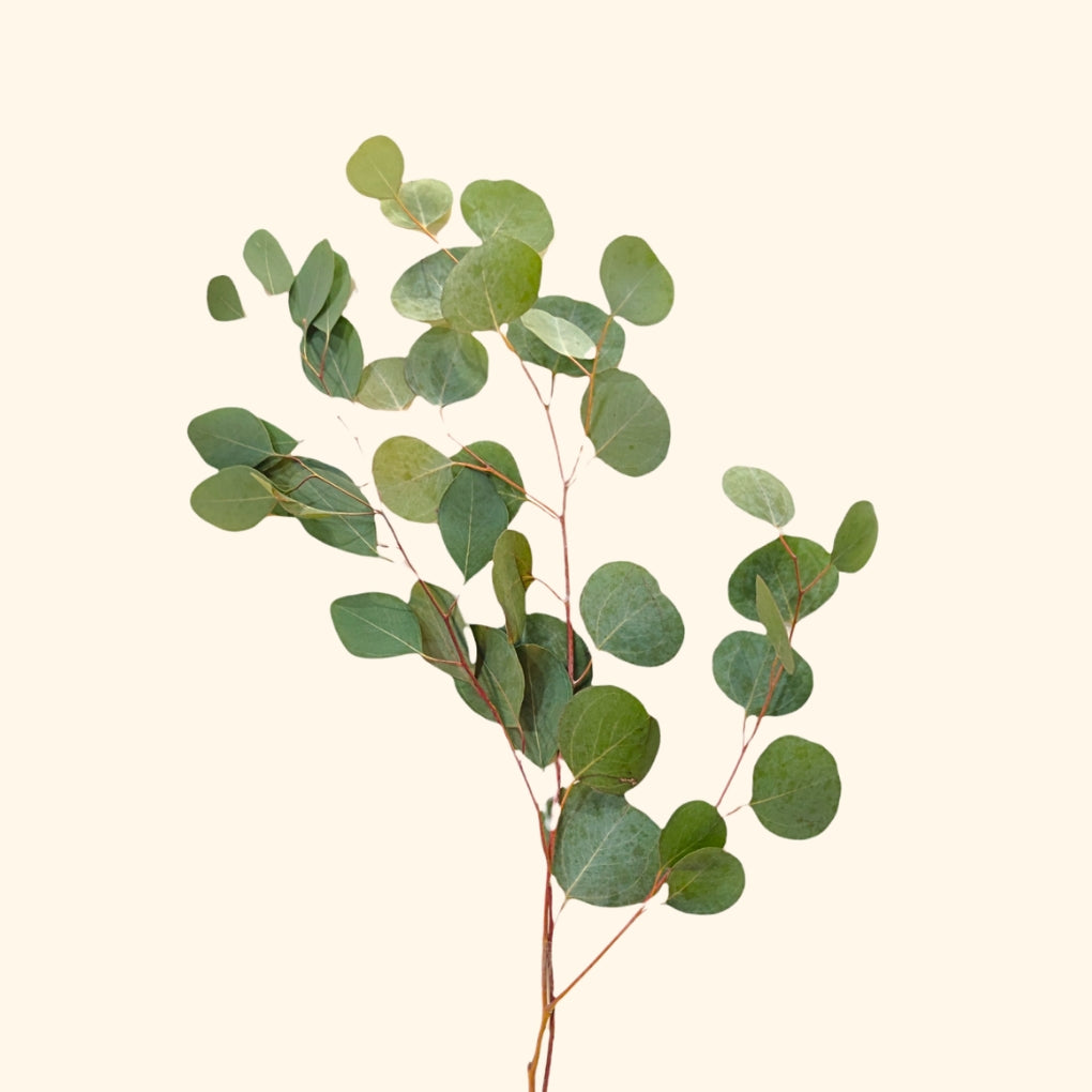 ยูคาลิปตัส ซิลเวอร์ ดอลลาร์ มีใบกลมสีเขียวอมเทา มักถูกใช้แทนความหมายของ ความสงบ ความบริสุทธิ์ และการปกป้องคุ้มครอง โทนสีที่นุ่มนวลช่วยเพิ่มบรรยากาศแห่ง ความผ่อนคลายและความงามแบบธรรมชาติ