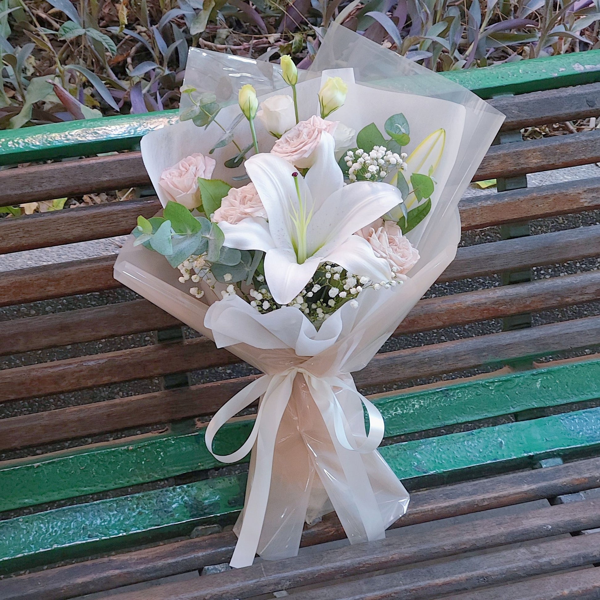 สง่างาม? แน่นอนครับ คลาสสิก? จัดเต็ม ช่อนี้ประกอบด้วยดอกลิลลี่กิ่งเดี่ยวประดับคู่กับกุหลาบสีเทาอ่อน เหมาะอย่างยิ่งสำหรับช่วงเวลาที่คุณอยากสร้างความประทับใจด้วยความงดงามแบบเรียบหรู ไม่ว่าจะเป็นงานแต่งงาน วันครบรอบ หรือแค่เพื่อส่งความรู้สึกพิเศษ ช่อนี้สื่อได้เหมือนบอกว่า “ฉันเห็นคุณ และคุณยอดเยี่ยม” ทั้งหมดถูกถ่ายทอดผ่านดอกไม้สวย ๆ